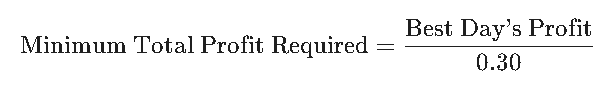 Example: If your best day was $1,500, you must reach $5,000 total profit before your payout is eligible. If you're below this, you must keep trading to "dilute" your windfall gains.
